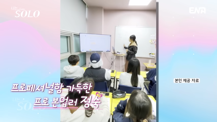 대구에서 4년 넘게 초·중등 영어학원 원장으로 활동 중인 정숙은 진취적이고 능동적인 모습과는 다르게 의외의 여림도 갖춘 반전 매력이 있는 인물입니다. 학원 확장까지 성공하며 커리어를 탄탄하게 다져온 만큼 책임감이 강한 스타일입니다.