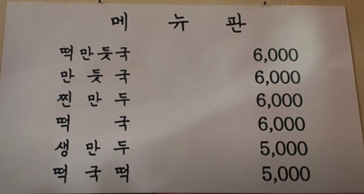 - 떡만둣국 ┃ 6,000원 — 떡과 만두가 어우러진 대표 메뉴