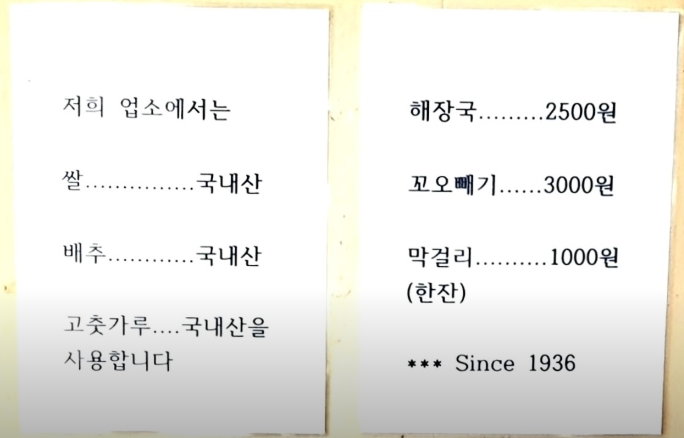 1936년부터 3대째 이어져 온 이 식당은 상주에서 ‘역사 깊은 해장국집’으로 손꼽히며 메뉴 가격이 해장국 3,000원 / 곱빼기 3,500원이라는 믿기 힘든 가성비로 유명합니다.