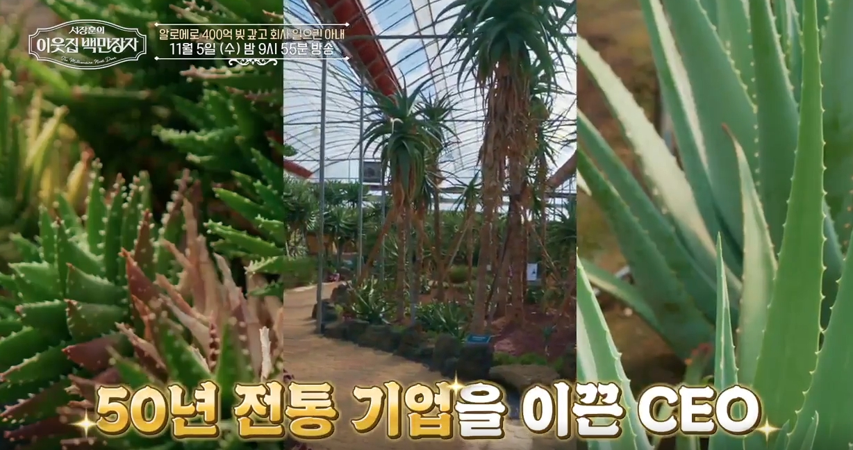 11월 5일 방송될 EBS 〈서장훈의 이웃집 백만장자〉에서는 그동안 공개되지 않았던 최연매 대표의 집, 삶, 철학, 그리고 알로에 신화를 완성한 비하인드까지 더욱 깊이 있게 전해질 예정입니다. 그녀의 인생 여정이 어떤 메시지를 남길지, 많은 시청자들의 관심이 모이고 있습니다.